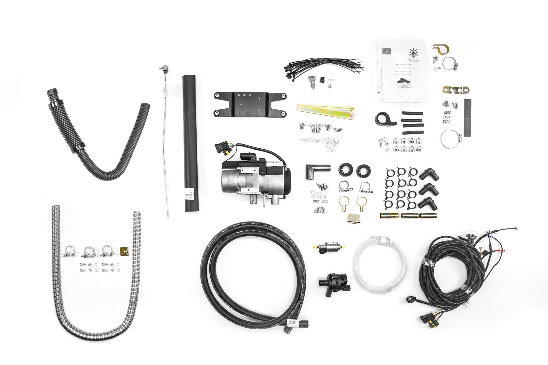 - Монтажные комплекты: воздухозаборника, циркуляционного насоса, жгутов, топливной системы, выхлопной системы, системы охлаждения;